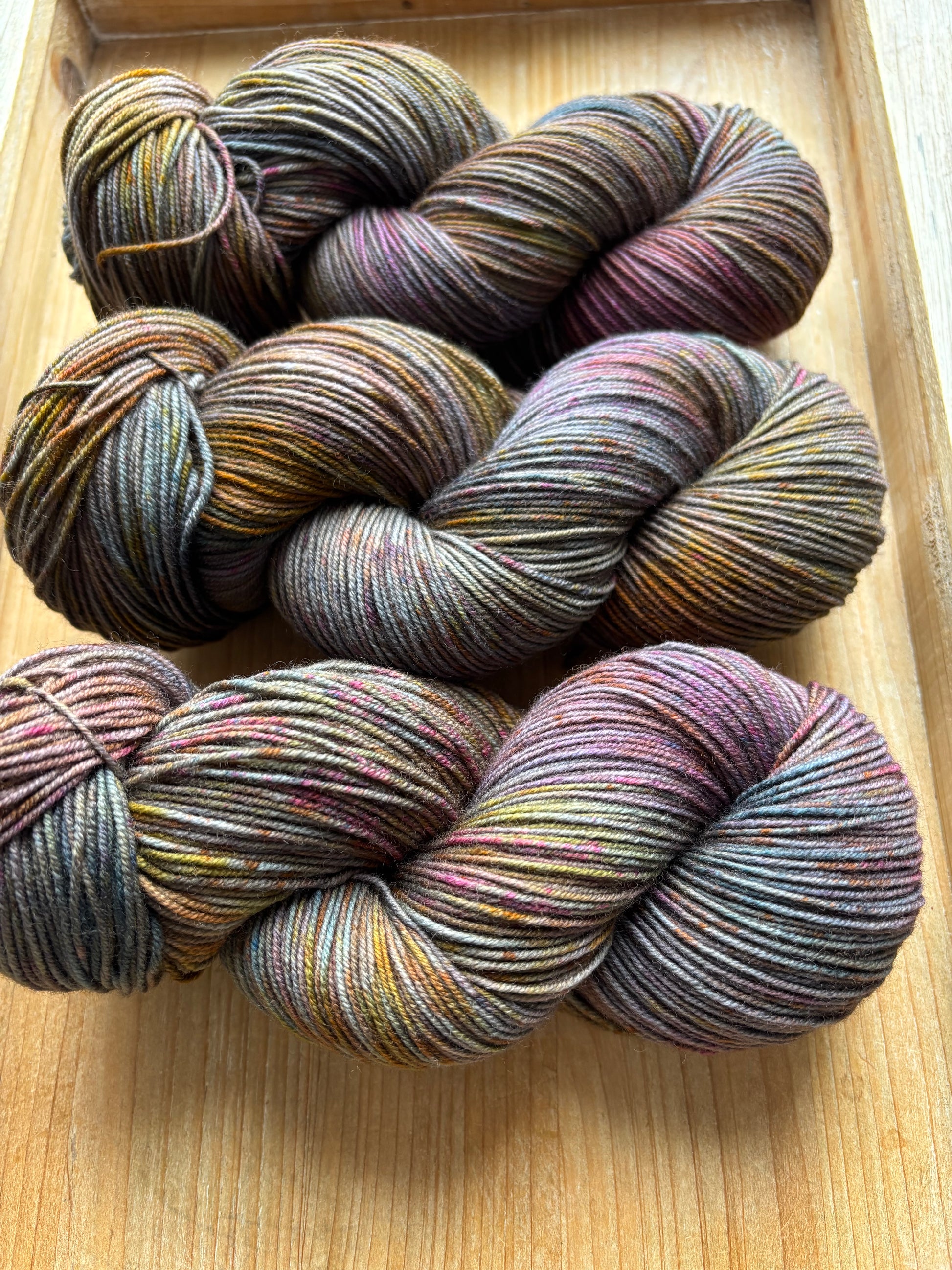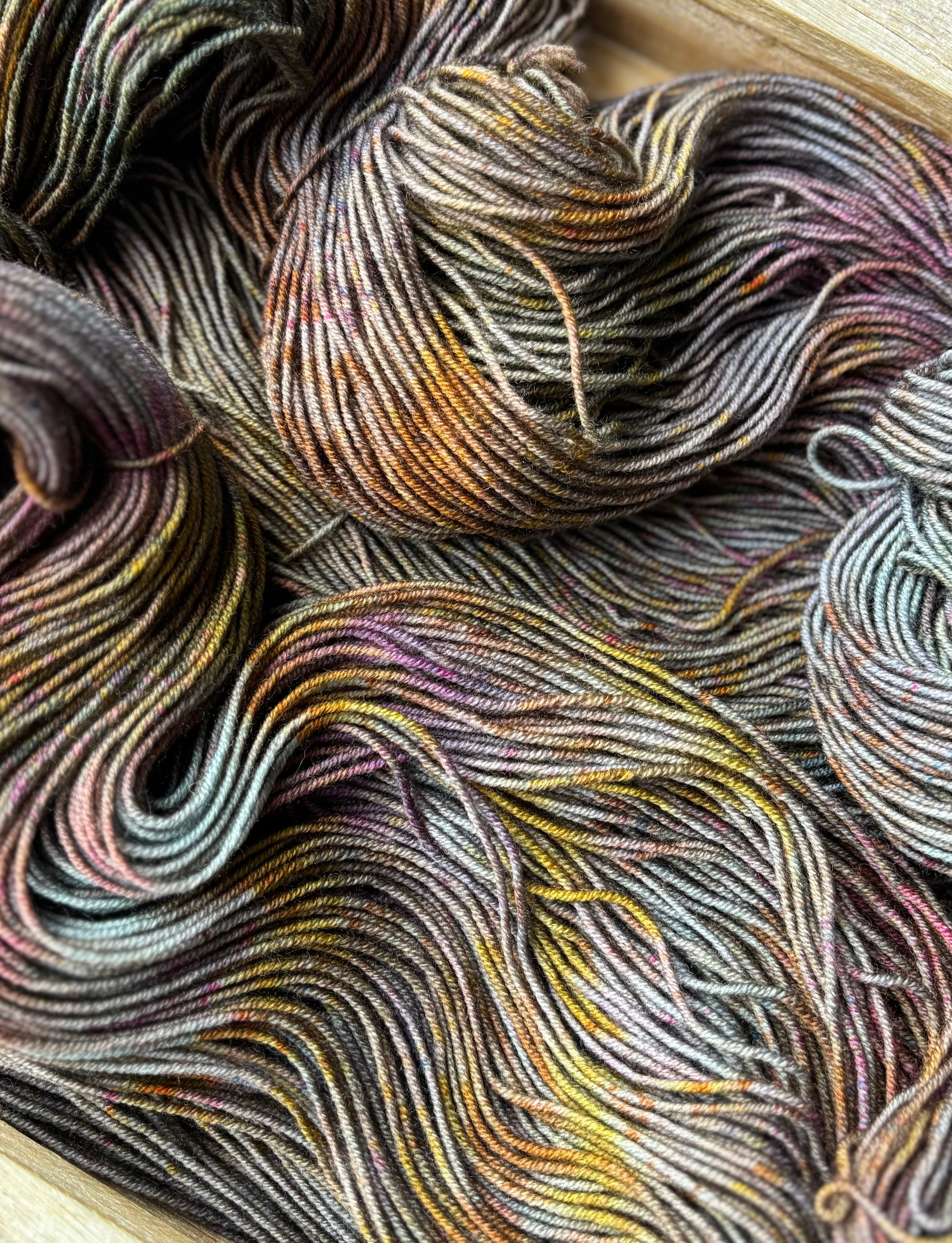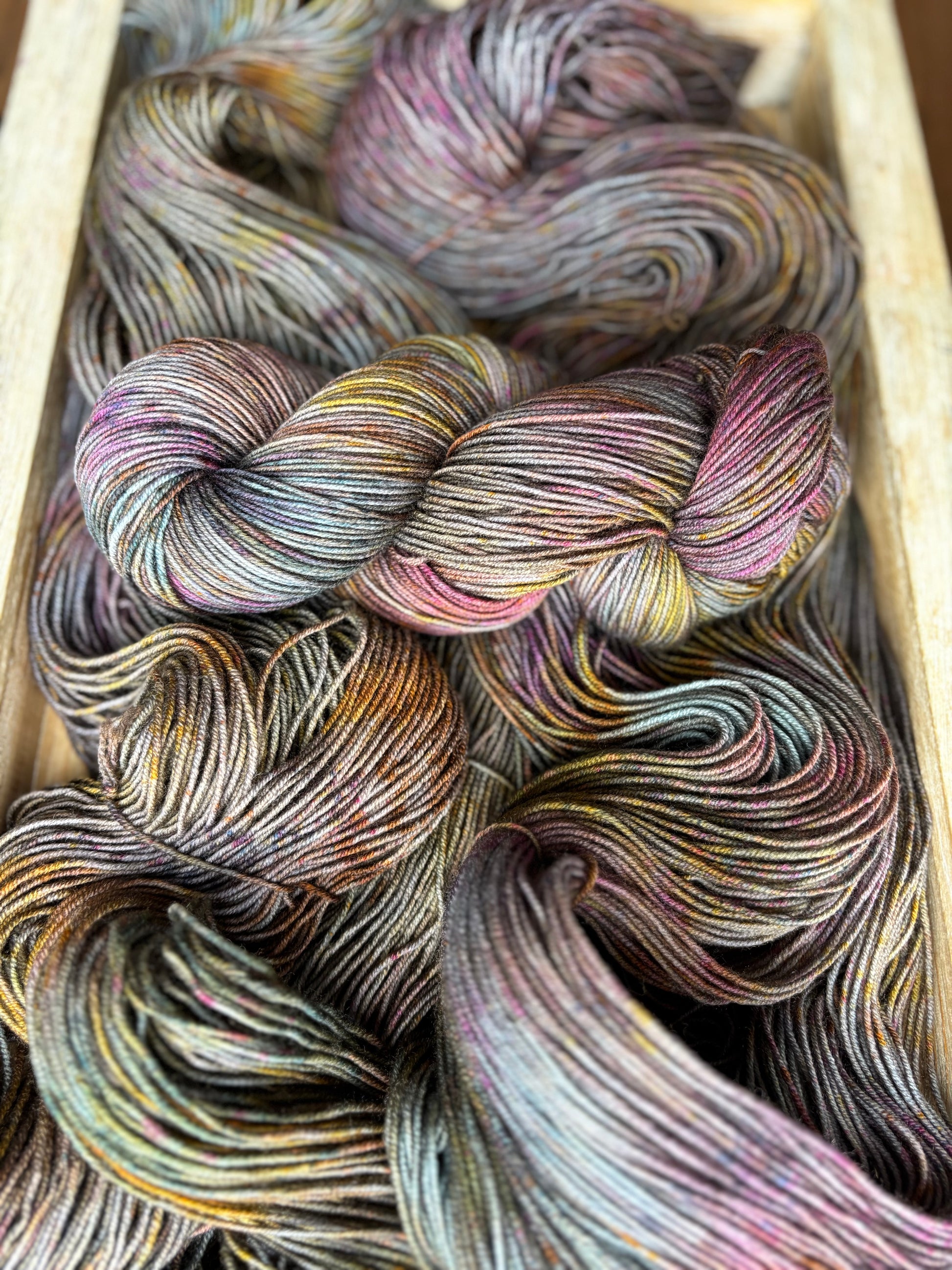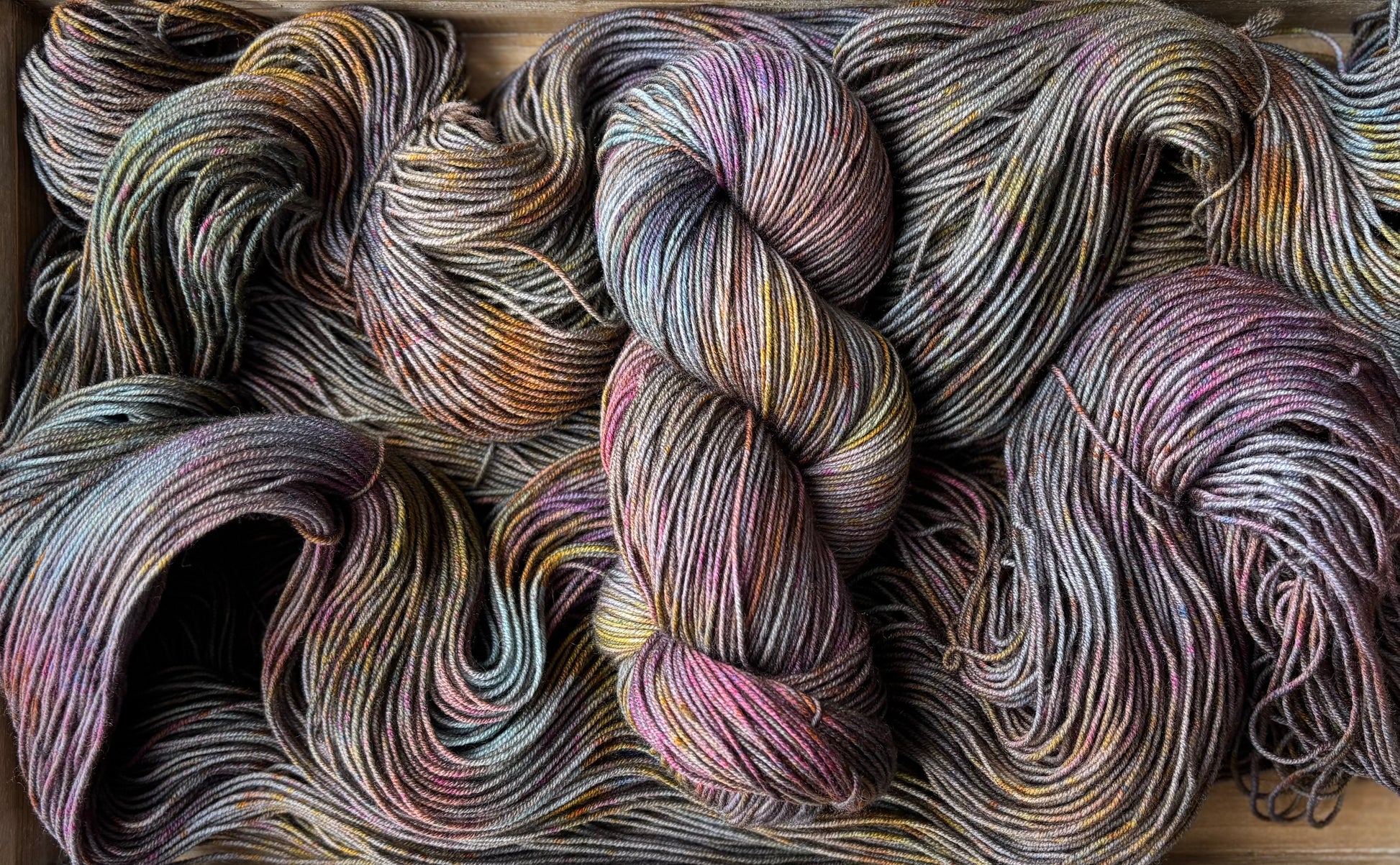 Speckled Showstopper is one wild colour way! Speckles of multiple dyes steal the show and take on a life of their own in this vibrant and unpredictable addition to the shop!