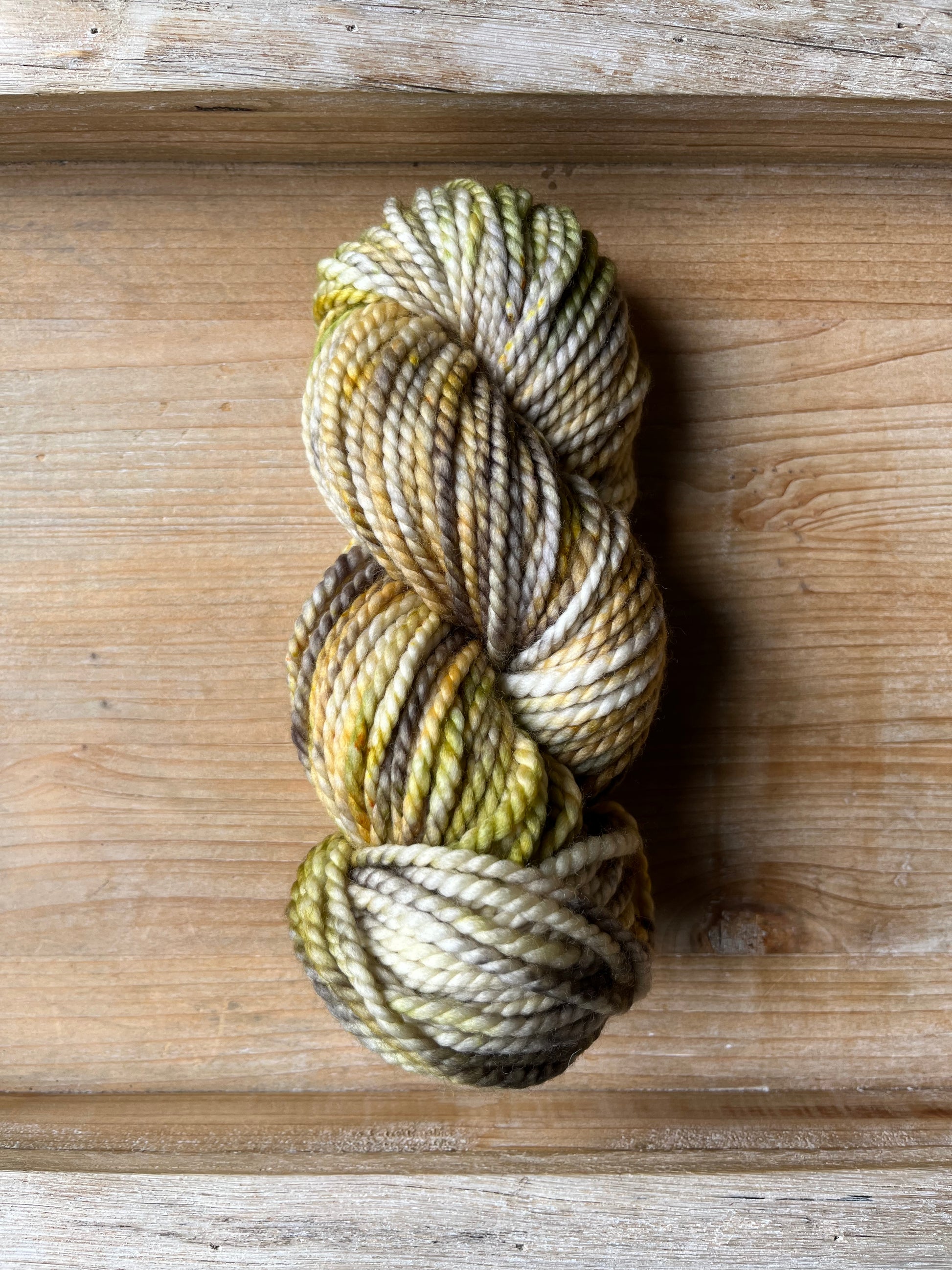 Alpaca Aran Base: This yarn base has become a true favourite of mine for any project calling for Worsted or Aran Weight yarn. Superbly soft and fuzzy, I find this base to be less dense and firm than my Classic Worsted Base. Because this base is made up of Untreated Baby Alpaca fibre, my Forever Colourways do end up looking quite different on this base, which can be tricky and yet, delightfully surprising. Speckles will look more smudge-y and muted, and the dye colours themselves turn out softer and more muddled overall. This yarn is a 3ply, and clocks in at 181 yards and 100 grams per skien. Hand wash only, lay flat to dry. Colour bleeding can be extra prevalent with untreated yarn bases, like Alpaca Aran. Fibres in this base are sourced from South America.