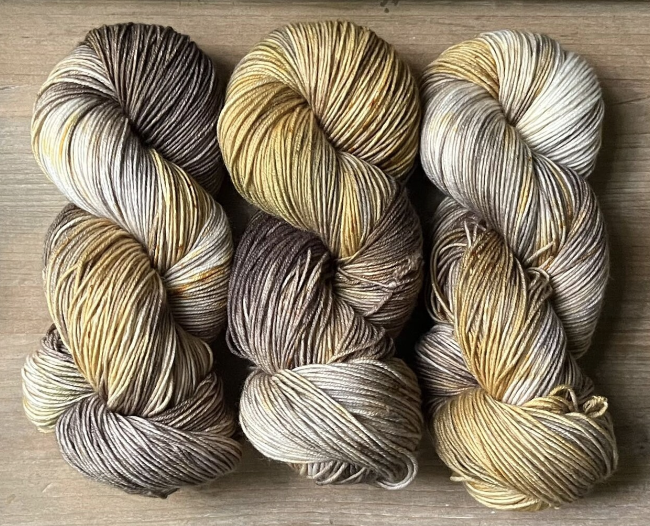 Luxe Sock Base: Luxe Sock is made up of 75% Ultra Fine Merino Wool, 15% Mulberry Silk, and 10% Cashmere. Each skien is 100 grams and 437 yards, 2ply construction. This yarn base is heavenly soft against the skin, and perfect for a special project calling for a high end fingering weight yarn. The Mulberry Silk adds drape and lustre, and the cashmere creates a fuzzy halo effect as you work with it. The colours of dye tend to shine through, looking much more striking and rich compared to some of my samples on Superwash bases. Fibres in this base are sourced from Australia, the wool used in this yarn is ethically produced from sheep that have NOT been mulesed. Hand wash only, lay flat to dry.