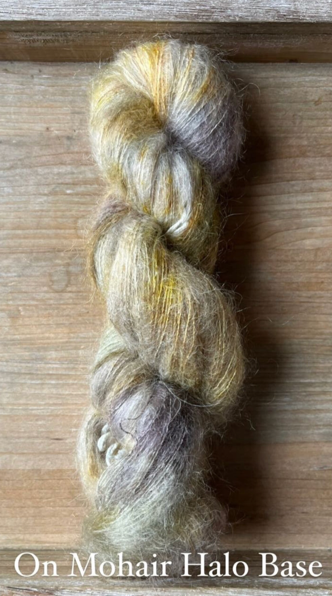 Mohair Halo Base: A delicate, lace weight yarn made up of 72% Superkid Mohair and 28% Mulberry Silk. Each skein is 50 grams and 460 yards, single ply construction. This yarn is lovely on it’s own, but is also amazing when held together with another yarn base. The fuzziness of the mohair creates a halo of colour within your project. Fibres in this base are sourced from South Africa. Hand wash only, lay flat to dry.