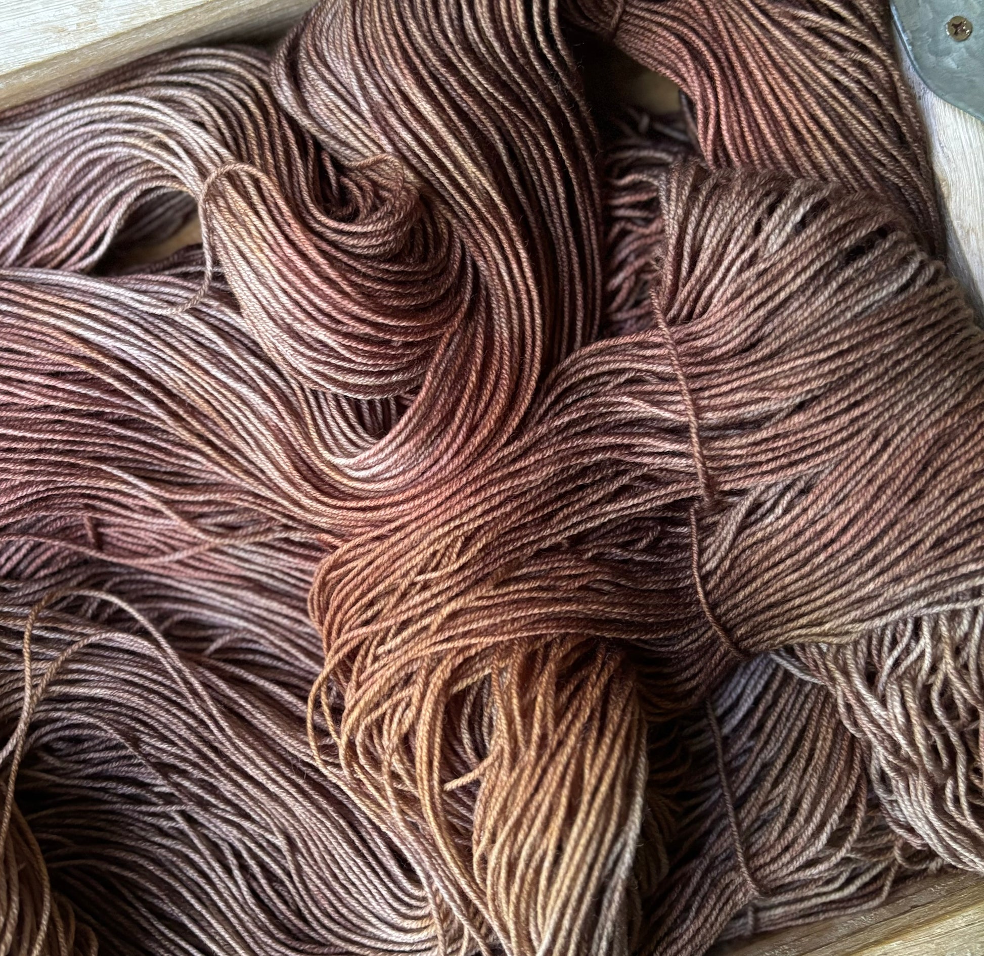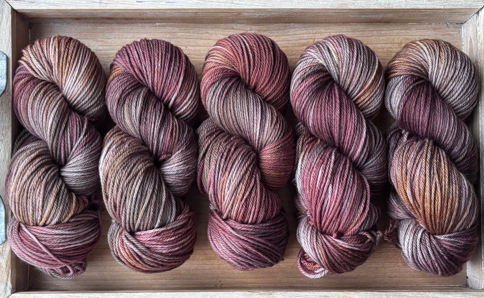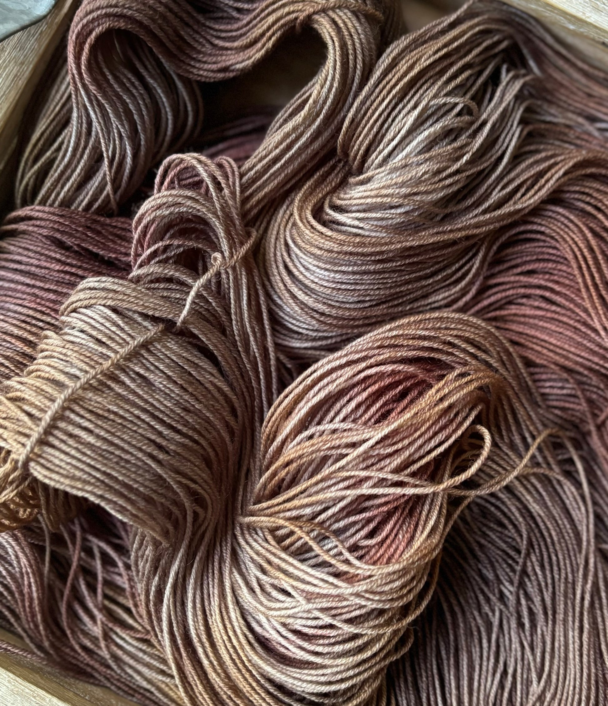 Luxe Sock Base: Luxe Sock is made up of 75% Ultra Fine Merino Wool, 15% Mulberry Silk, and 10% Cashmere. Each skien is 100 grams and 437 yards, 2ply construction. This yarn base is heavenly soft against the skin, and perfect for a special project calling for a high end fingering weight yarn. The Mulberry Silk adds drape and lustre, and the cashmere creates a fuzzy halo effect as you work with it. The colours of dye tend to shine through, looking much more striking and rich compared to some of my samples on Superwash bases. Fibres in this base are sourced from Australia, the wool used in this yarn is ethically produced from sheep that have NOT been mulesed. Hand wash only, lay flat to dry.