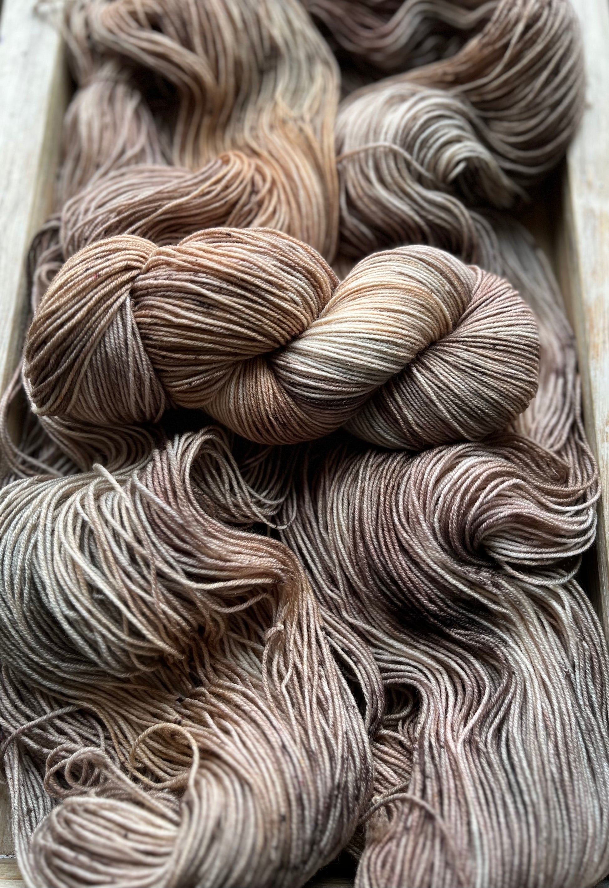 Toasted Marshmallow is shown here on my Squishy Sock Base