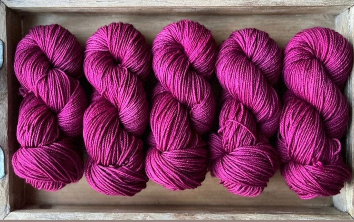 Luxe Sock Base: Luxe Sock is made up of 75% Ultra Fine Merino Wool, 15% Mulberry Silk, and 10% Cashmere. Each skien is 100 grams and 437 yards, 2ply construction. This yarn base is heavenly soft against the skin, and perfect for a special project calling for a high end fingering weight yarn. The Mulberry Silk adds drape and lustre, and the cashmere creates a fuzzy halo effect as you work with it. The colours of dye tend to shine through, looking much more striking and rich compared to some of my samples on Superwash bases. Fibres in this base are sourced from Australia, the wool used in this yarn is ethically produced from sheep that have NOT been mulesed. Hand wash only, lay flat to dry.