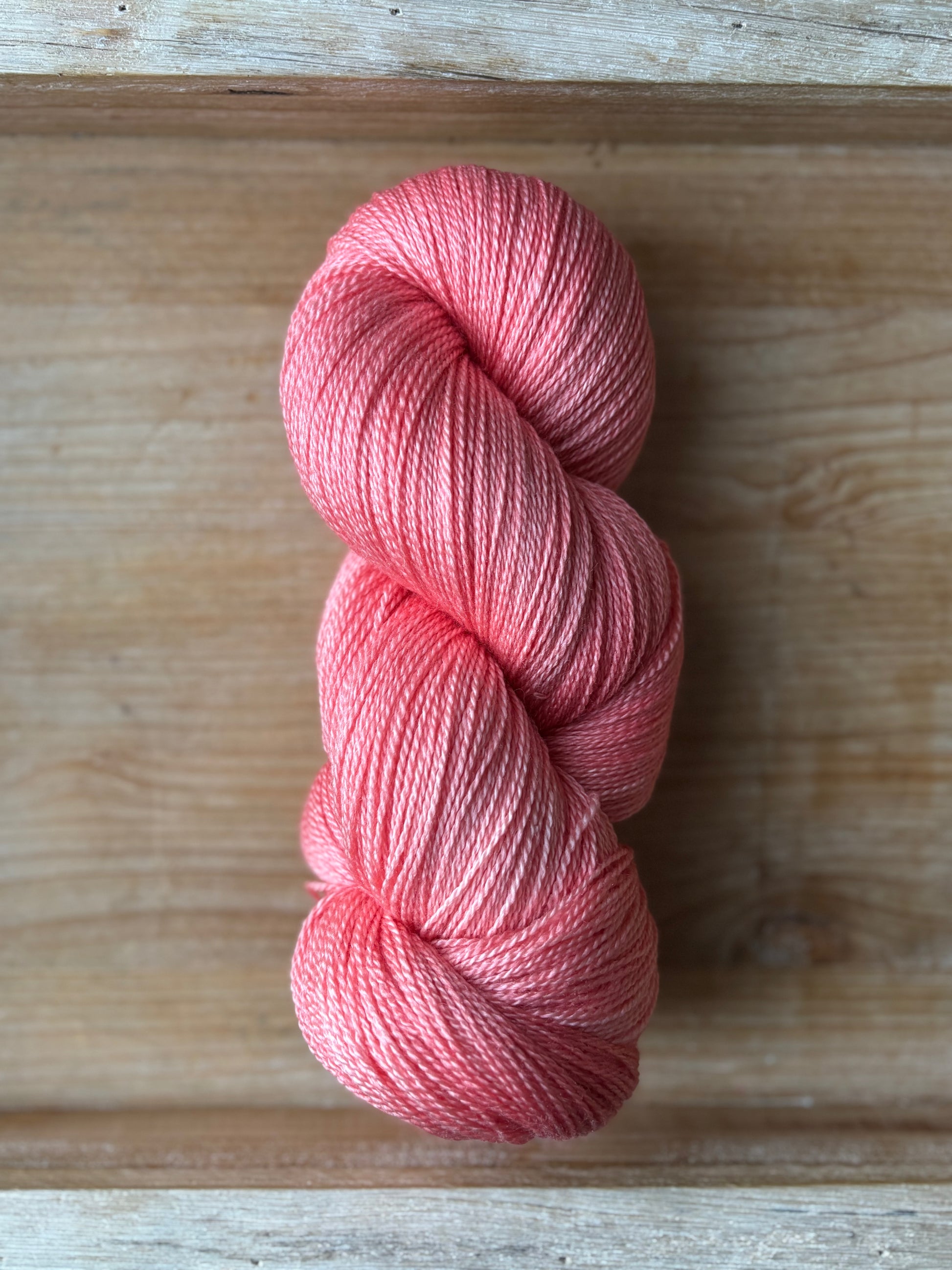 Luxe Sock Base: Luxe Sock is made up of 75% Ultra Fine Merino Wool, 15% Mulberry Silk, and 10% Cashmere. Each skien is 100 grams and 437 yards, 2ply construction. This yarn base is heavenly soft against the skin, and perfect for a special project calling for a high end fingering weight yarn. The Mulberry Silk adds drape and lustre, and the cashmere creates a fuzzy halo effect as you work with it. The colours of dye tend to shine through, looking much more striking and rich compared to some of my samples on Superwash bases. Fibres in this base are sourced from Australia, the wool used in this yarn is ethically produced from sheep that have NOT been mulesed. Hand wash only, lay flat to dry.