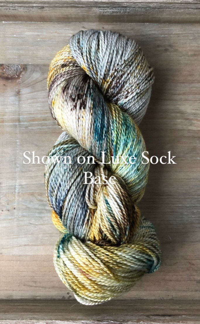 Luxe Sock Base: Luxe Sock is made up of 75% Ultra Fine Merino Wool, 15% Mulberry Silk, and 10% Cashmere. Each skien is 100 grams and 437 yards, 2ply construction. This yarn base is heavenly soft against the skin, and perfect for a special project calling for a high end fingering weight yarn. The Mulberry Silk adds drape and lustre, and the cashmere creates a fuzzy halo effect as you work with it. The colours of dye tend to shine through, looking much more striking and rich compared to some of my samples on Superwash bases. Fibres in this base are sourced from Australia, the wool used in this yarn is ethically produced from sheep that have NOT been mulesed. Hand wash only, lay flat to dry.
