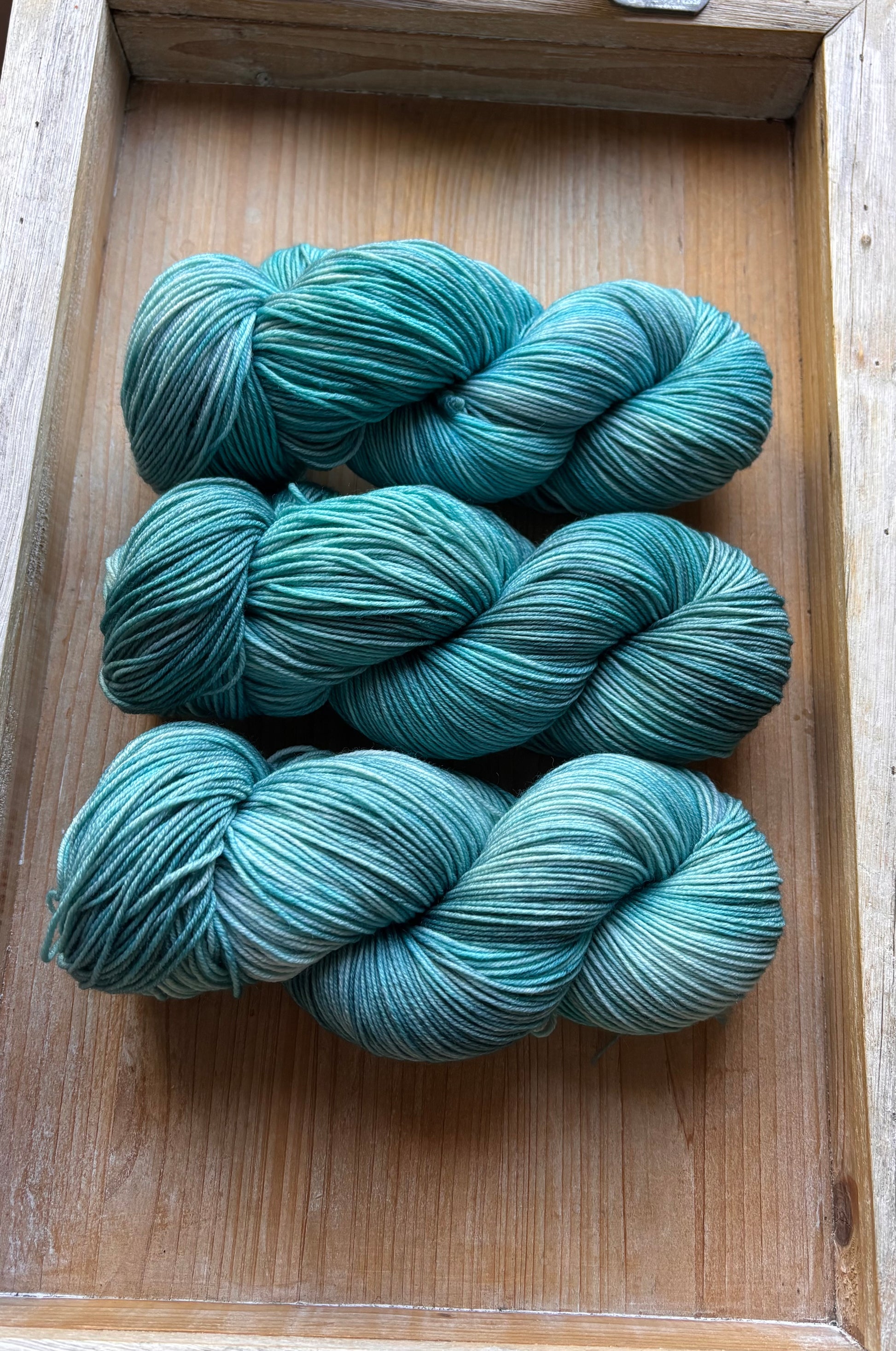 Luxe Sock Base: Luxe Sock is made up of 75% Ultra Fine Merino Wool, 15% Mulberry Silk, and 10% Cashmere. Each skien is 100 grams and 437 yards, 2ply construction. This yarn base is heavenly soft against the skin, and perfect for a special project calling for a high end fingering weight yarn. The Mulberry Silk adds drape and lustre, and the cashmere creates a fuzzy halo effect as you work with it. The colours of dye tend to shine through, looking much more striking and rich compared to some of my samples on Superwash bases. Fibres in this base are sourced from Australia, the wool used in this yarn is ethically produced from sheep that have NOT been mulesed. Hand wash only, lay flat to dry.