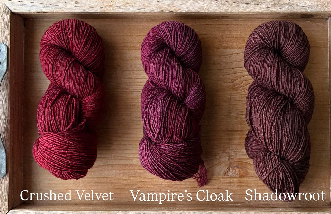 Luxe Sock Base: Luxe Sock is made up of 75% Ultra Fine Merino Wool, 15% Mulberry Silk, and 10% Cashmere. Each skien is 100 grams and 437 yards, 2ply construction. This yarn base is heavenly soft against the skin, and perfect for a special project calling for a high end fingering weight yarn. The Mulberry Silk adds drape and lustre, and the cashmere creates a fuzzy halo effect as you work with it. The colours of dye tend to shine through, looking much more striking and rich compared to some of my samples on Superwash bases. Fibres in this base are sourced from Australia, the wool used in this yarn is ethically produced from sheep that have NOT been mulesed. Hand wash only, lay flat to dry.