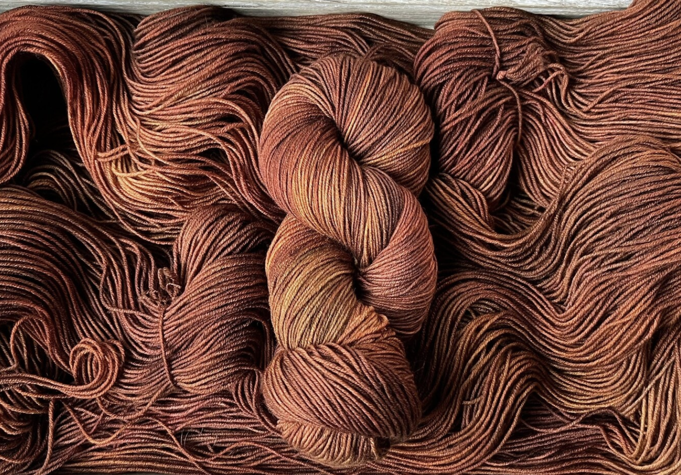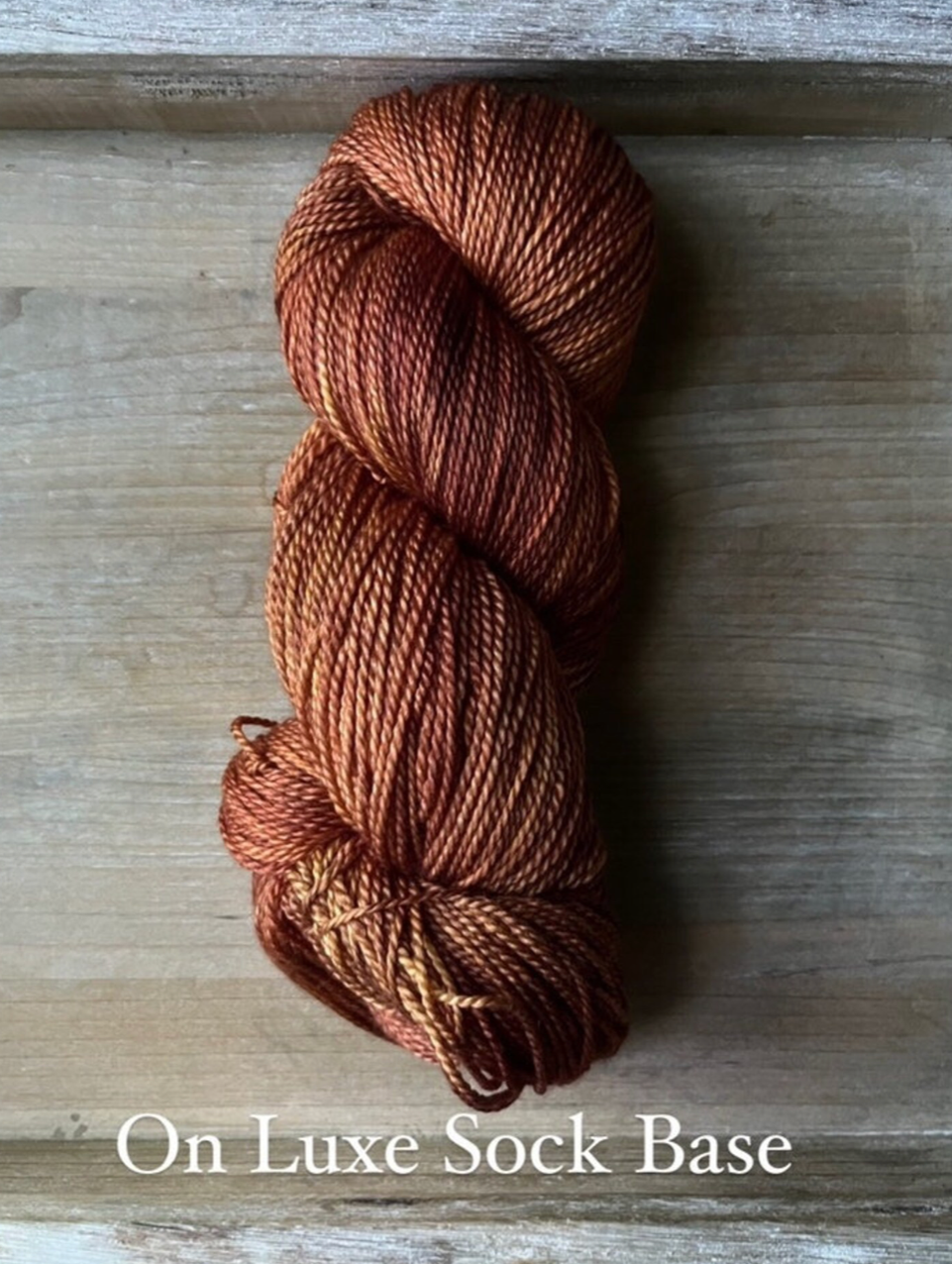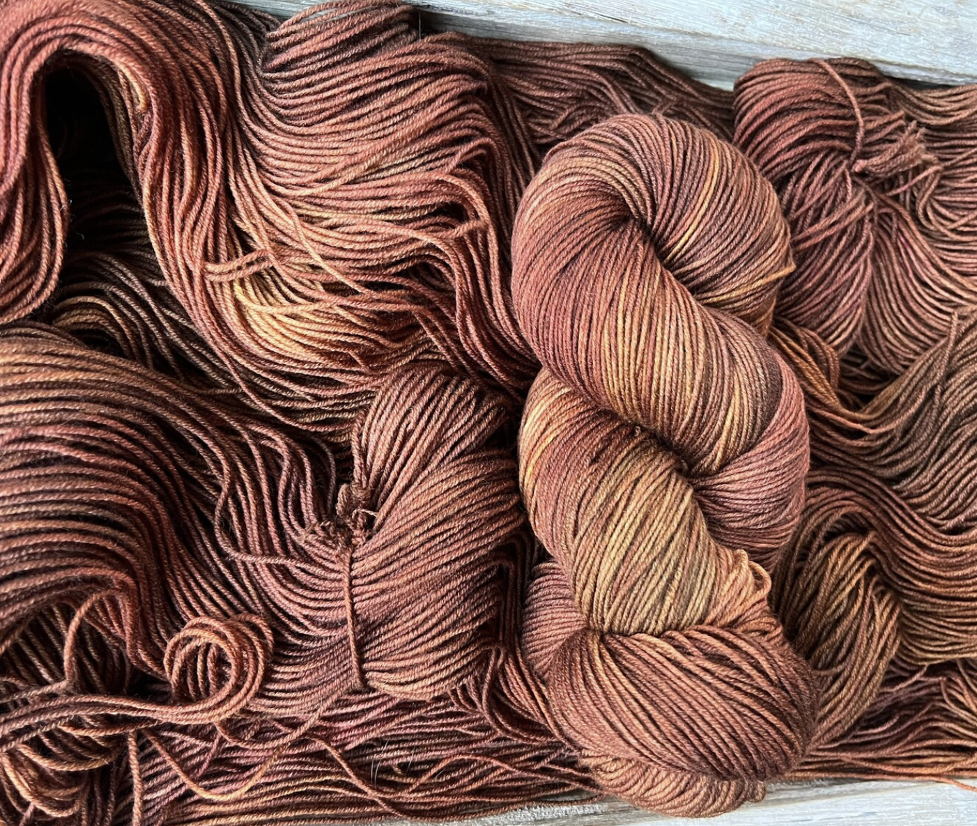 Warm and Toasty is a spectacular, rich colourway. Full of rusty oranges, caramel browns, and coppers. Absolutely stunning on it's own, or paired alongside other deep colourways like Inkwell, Witch Boots or All Star.