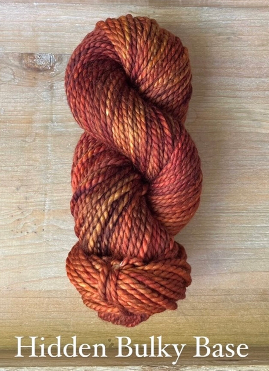 Hidden Bulky Base: Once a little shop secret, this base is now available all the time! The thickest of all my bases, this 100% Extra Fine Superwash Merino base is unbelievably soft next to the skin, and the dye colours simply shine through. Each skein is 100 grams and 109 yards, with a 2ply construction. Although made up of the same blend as the Classic Worsted Weight base, this yarn has a much softer feel to it thanks to the Extra Fine Merino Wool. Fibres in this base are sourced from Australia, the wool used in this yarn is ethically produced from sheep that have NOT been mulesed.