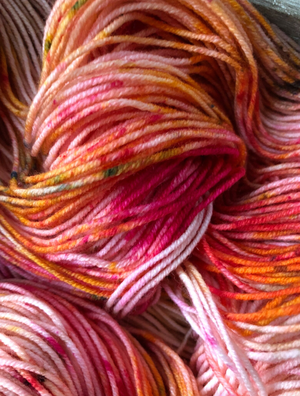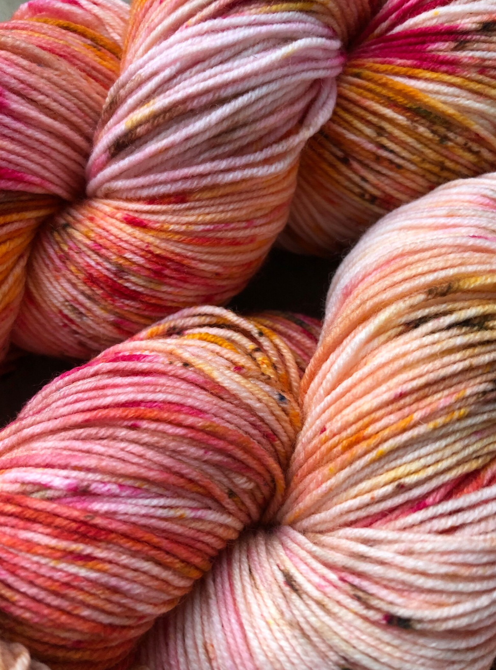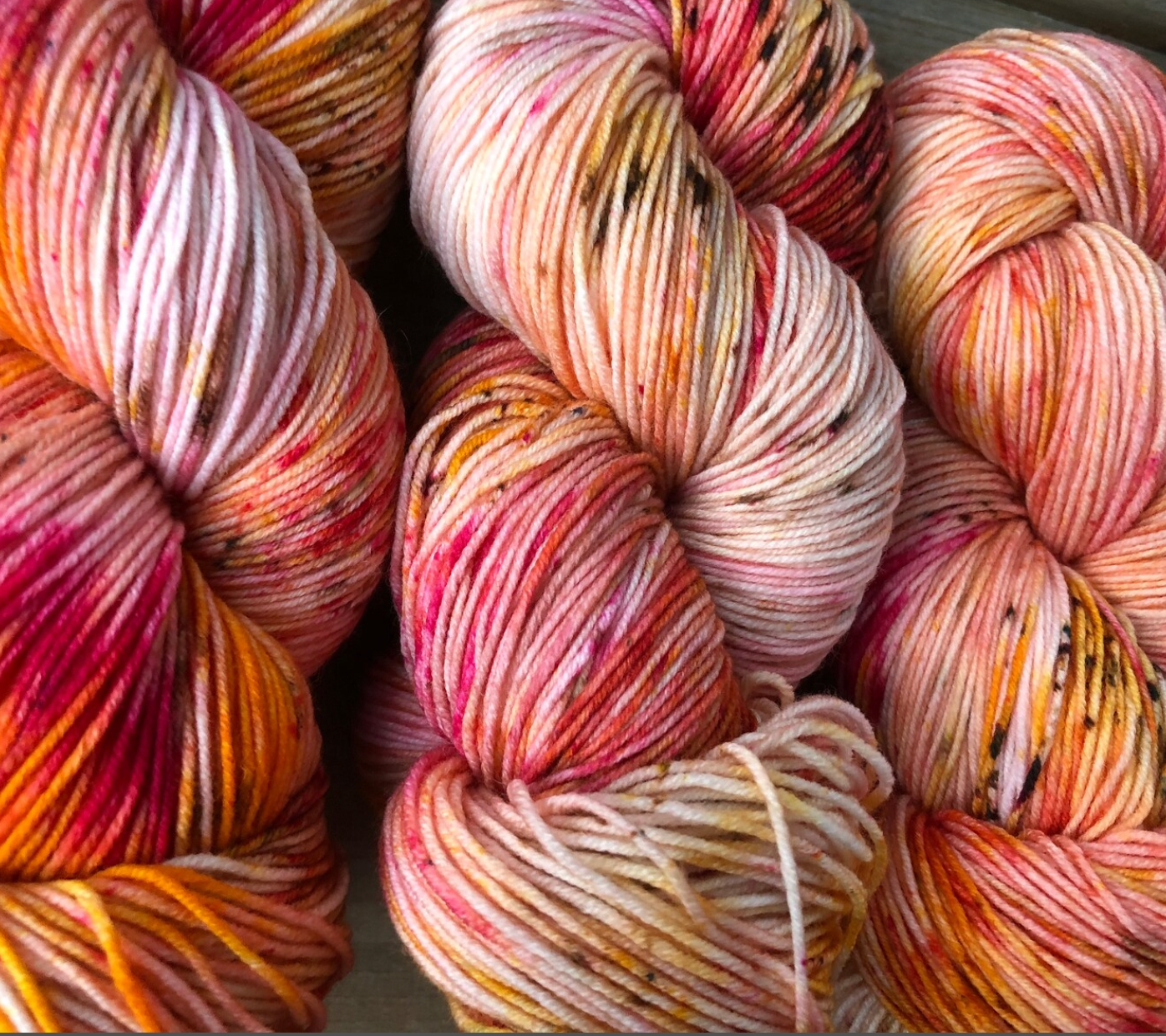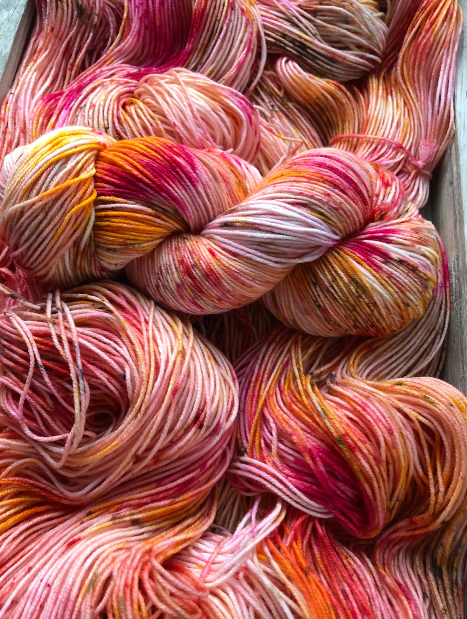 Luxe Sock Base: Luxe Sock is made up of 75% Ultra Fine Merino Wool, 15% Mulberry Silk, and 10% Cashmere. Each skien is 100 grams and 437 yards, 2ply construction. This yarn base is heavenly soft against the skin, and perfect for a special project calling for a high end fingering weight yarn. The Mulberry Silk adds drape and lustre, and the cashmere creates a fuzzy halo effect as you work with it. The colours of dye tend to shine through, looking much more striking and rich compared to some of my samples on Superwash bases. Fibres in this base are sourced from Australia, the wool used in this yarn is ethically produced from sheep that have NOT been mulesed. Hand wash only, lay flat to dry.