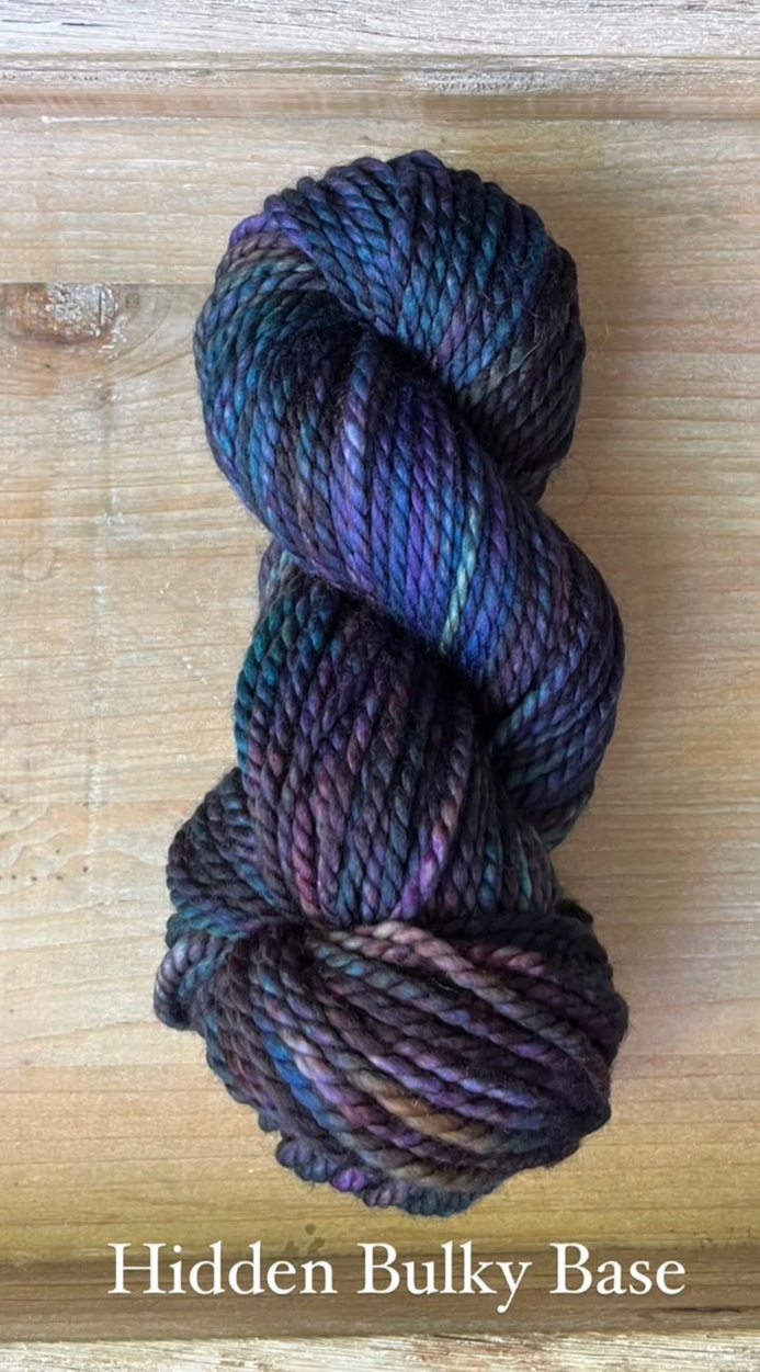 Hidden Bulky Base: Once a little shop secret, this base is now available all the time! The thickest of all my bases, this 100% Extra Fine Superwash Merino base is unbelievably soft next to the skin, and the dye colours simply shine through. Each skein is 100 grams and 109 yards, with a 2ply construction. Although made up of the same blend as the Classic Worsted Weight base, this yarn has a much softer feel to it thanks to the Extra Fine Merino Wool. Fibres in this base are sourced from Australia, the wool used in this yarn is ethically produced from sheep that have NOT been mulesed.