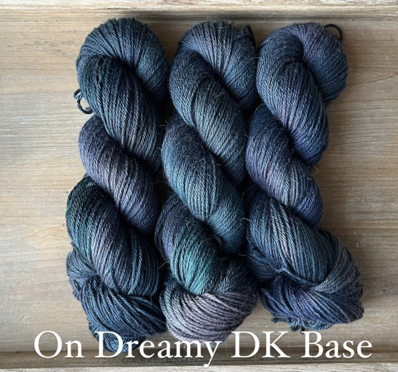Dreamy DK Base: A superb Double Knit weight yarn that is made up of 70% Baby Alpaca, 20% Silk and 10% Cashmere. Each skein is 100 grams and 246 yards, with a 4 ply construction. This yarn knits up beautifully and is oh so soft against the skin. Due to the nature of this yarn, the colours of the dye tend to be more muted and muddled, softer and subtler than on my superwash bases. Colourways always look different on this base, I try to add photos to the listing whenever possible. This is a luxury yarn base that is a pure pleasure to work with. The silk creates a lustrous hue and the cashmere gives a subtle fuzzy halo effect as you knit with it. Hand wash only, colour bleeding to be expected, especially with the first few washes. Fibres in this base are sourced from South America.