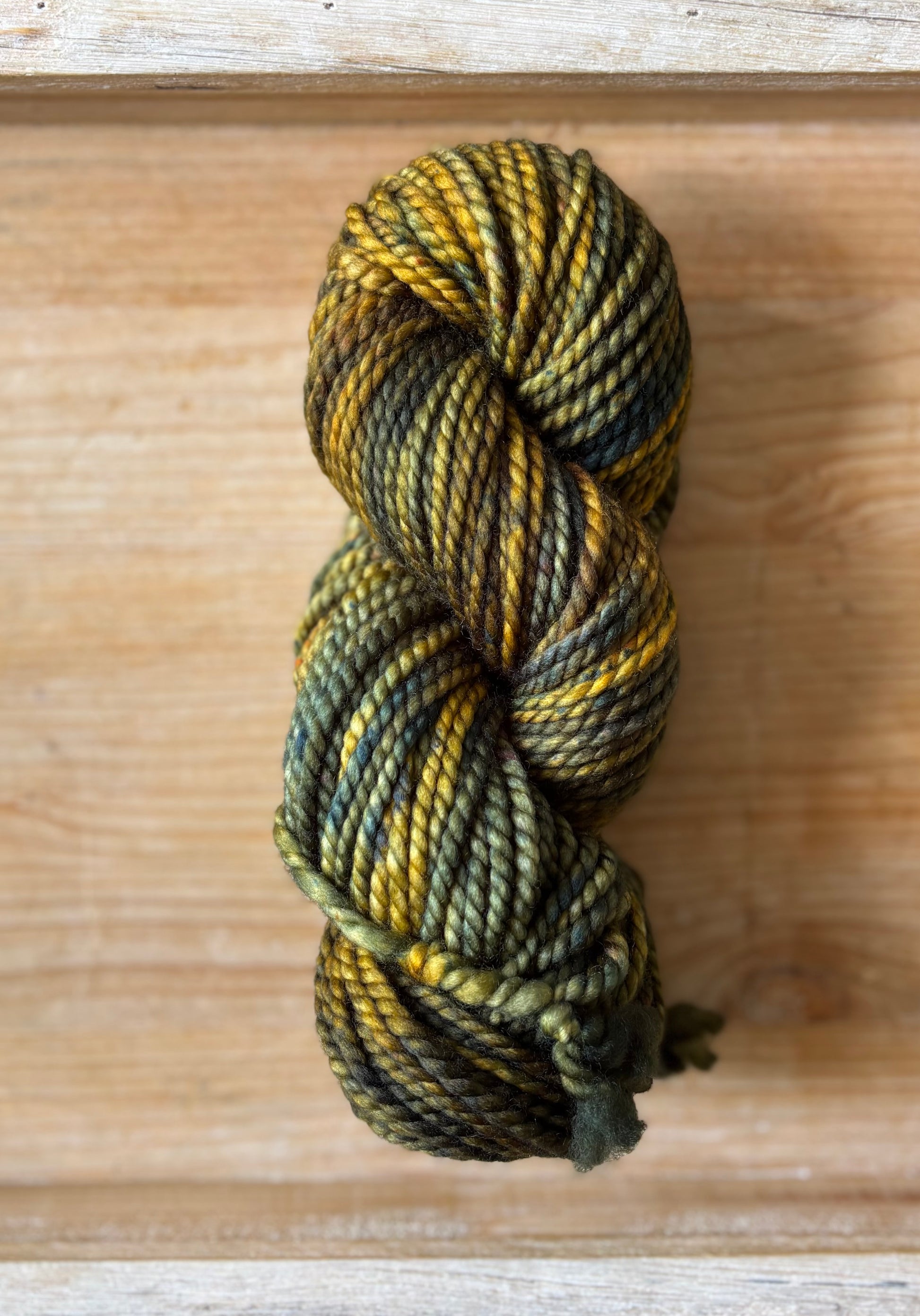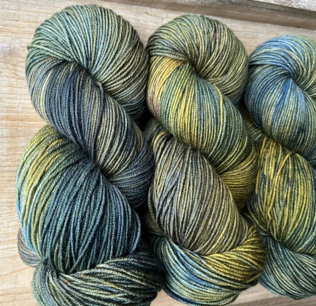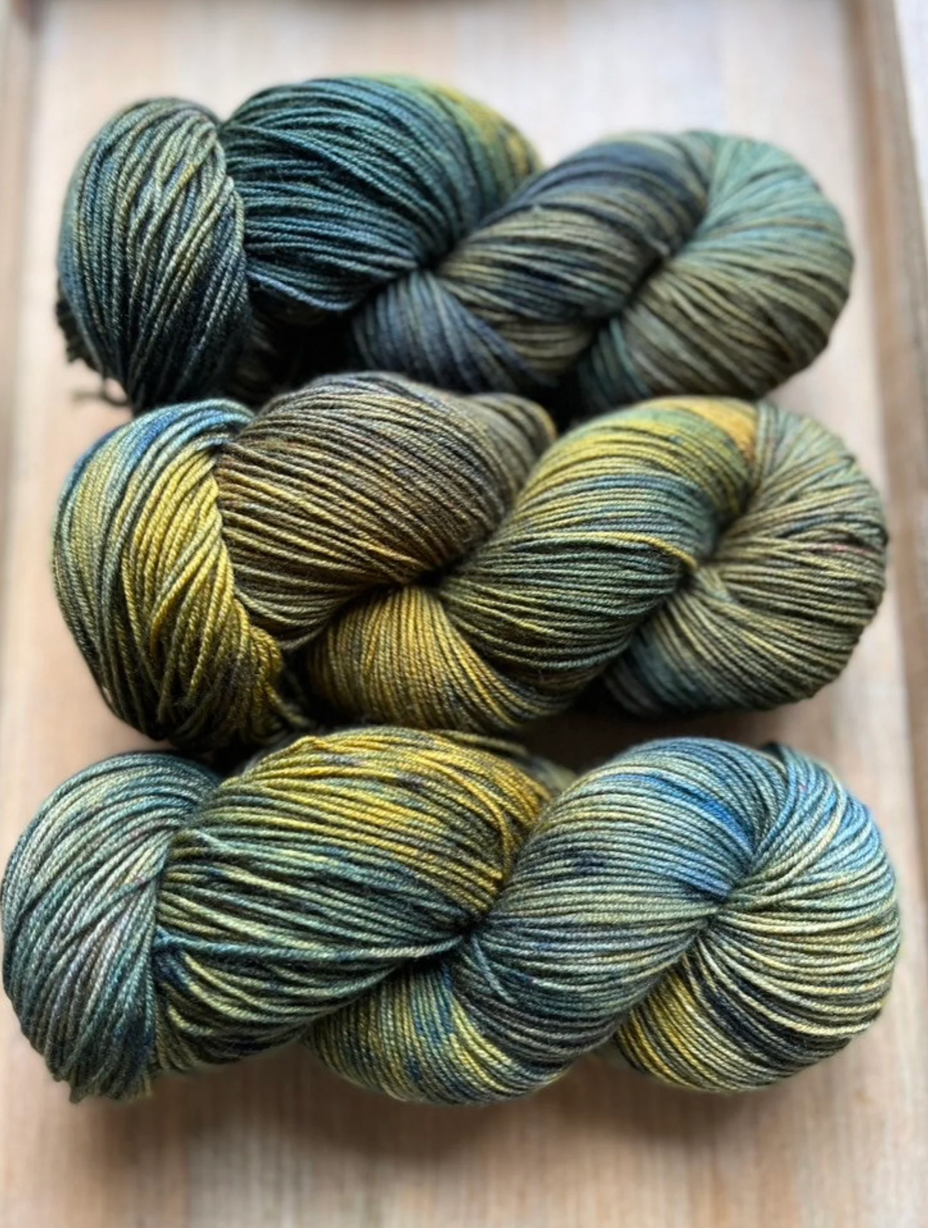 Wildwood is a vibrant, exciting blend of greens, blues and golds. With speckles throughout, each skein is packed with colour to keep things exciting as you make your way through your project.